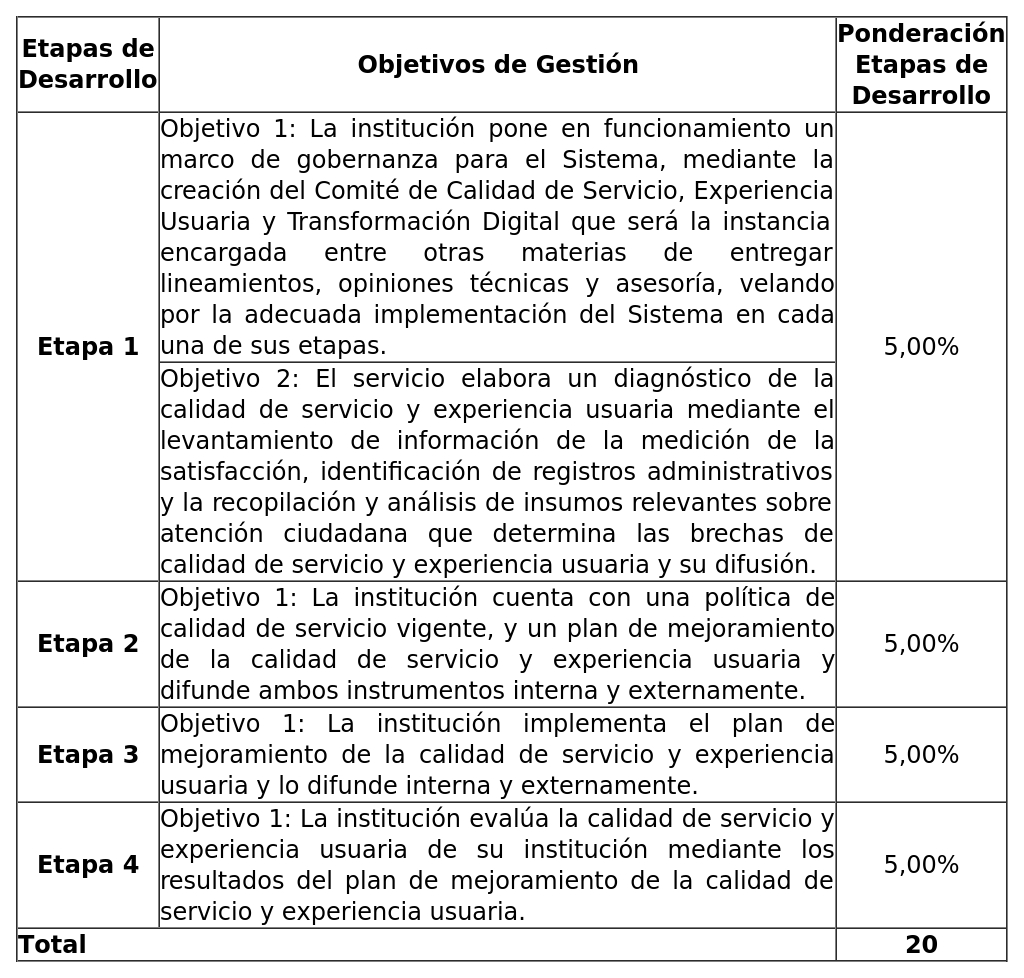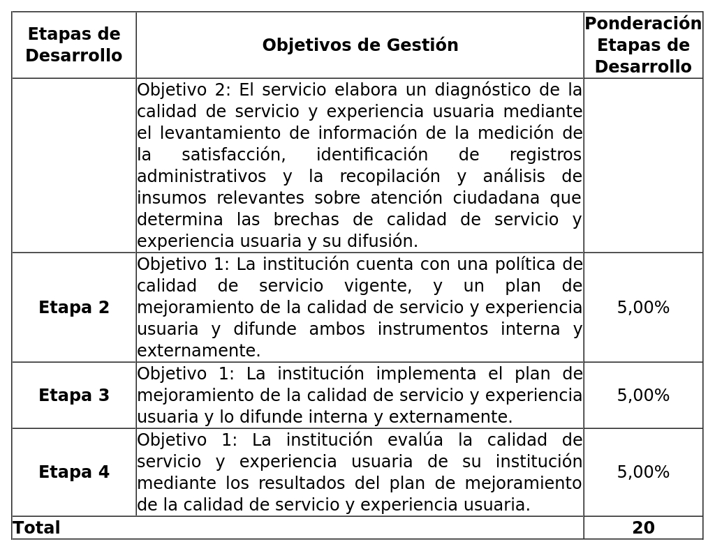 Objetivo 3. Calidad de Servicio (Ponderación: 40,00%)