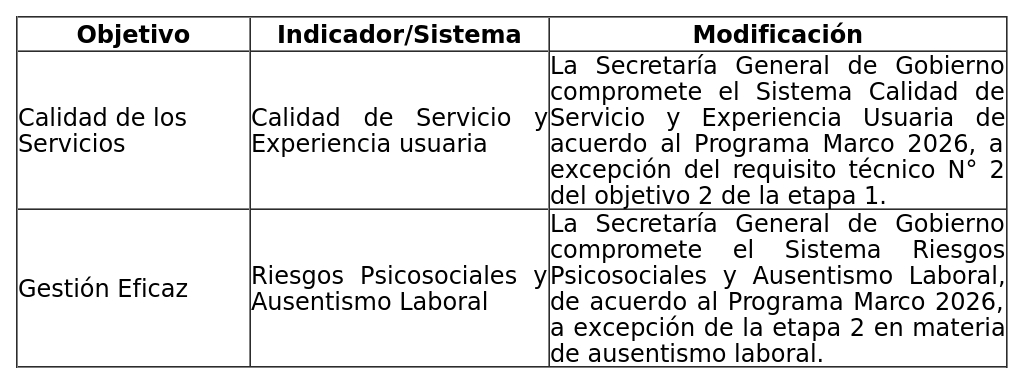Segundo: Establécense las siguientes situaciones de excepción en la aplicación del Programa Marco 2026 para los Servicios que se indican: