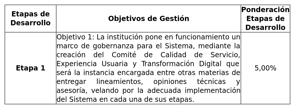 Objetivo 1. Gestión Eficaz (Ponderación: 30,00%)