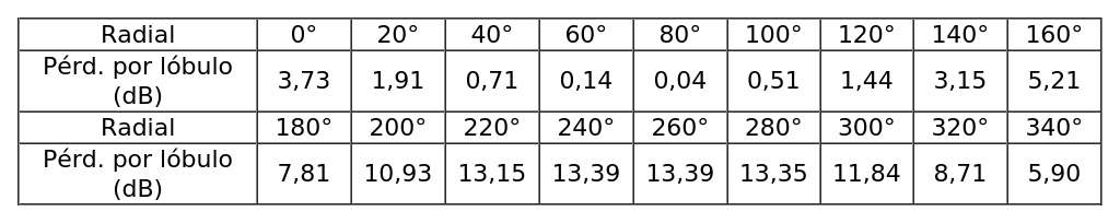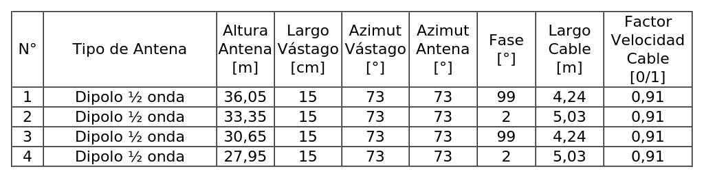 - Arreglo de antenas de acuerdo a la siguiente tabla: