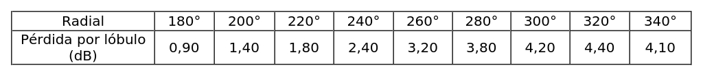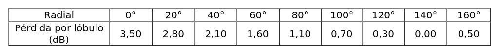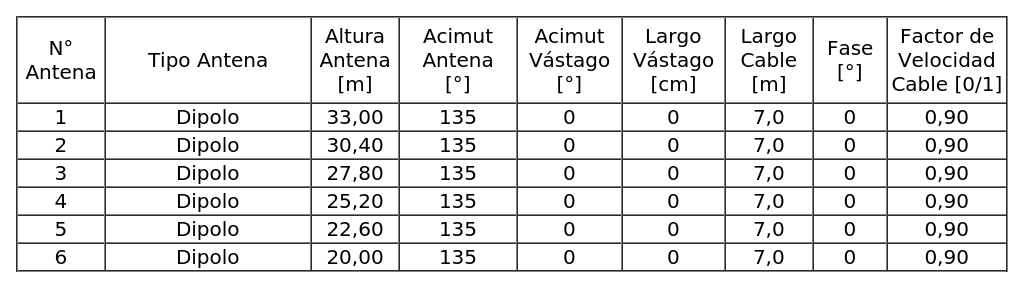 - Arreglo de antenas, de acuerdo al siguiente cuadro: