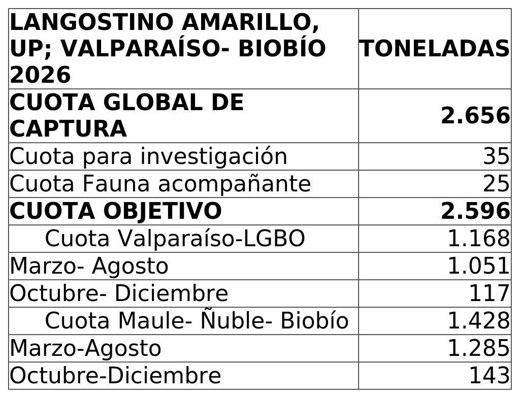 ESTABLECE CUOTA GLOBAL DE CAPTURA DE LANGOSTINO AMARILLO ÁREA VALPARAÍSO-BIOBÍO, AÑO 2026