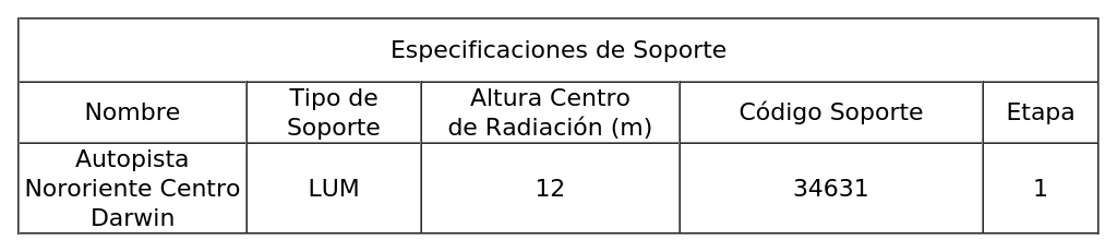 4.1 La infraestructura soporte de los sistemas radiantes, se indica a continuación: