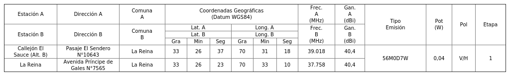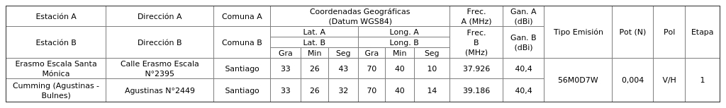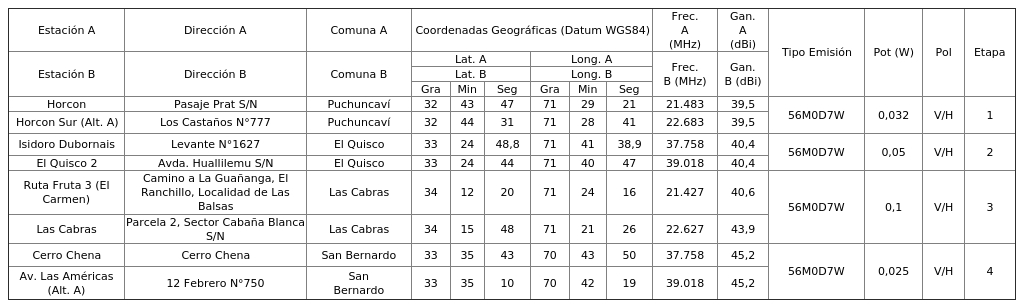 4. Para el Ingreso Subtel N° 91.953/2025: Autorízase a la concesionaria a instalar, operar y explotar un (1) radioenlace, según se indica a continuación: