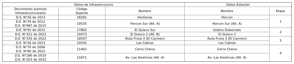 1.1. La infraestructura soporte de los sistemas radiantes, se indica a continuación: