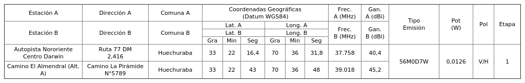 3. Para el Ingreso Subtel N° 91.969/2025: Autorízase a la concesionaria a instalar, operar y explotar un (1) radioenlace, según se indica a continuación: