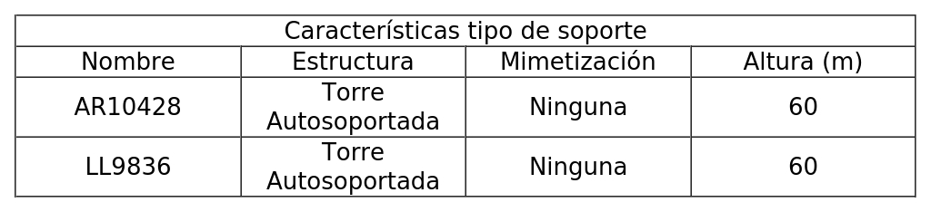 La infraestructura soporte de los sistemas radiantes se indica a continuación: