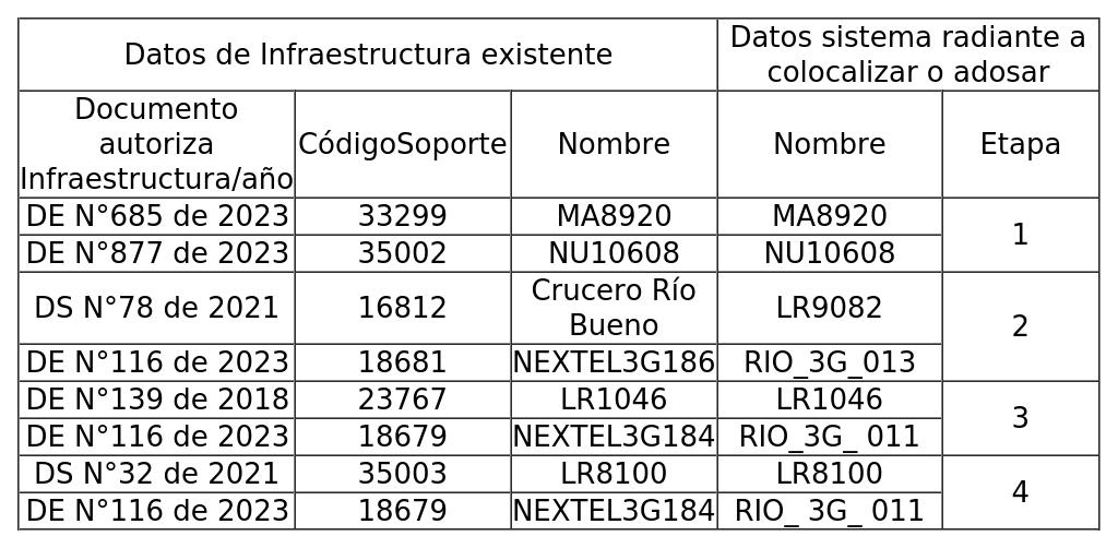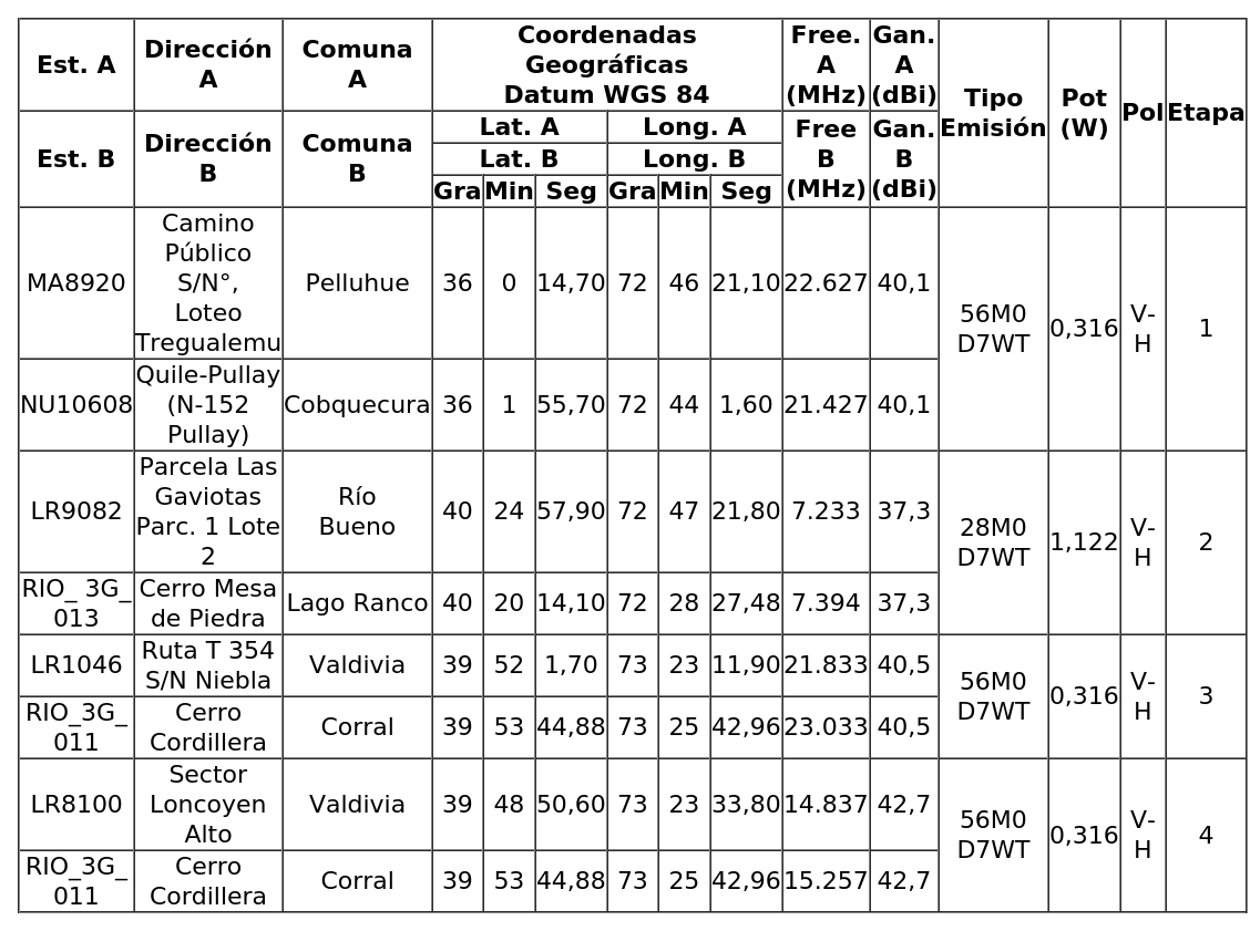 Los radioenlaces se conectarán a la red existente, a través de medios propios o de terceros debidamente autorizados.