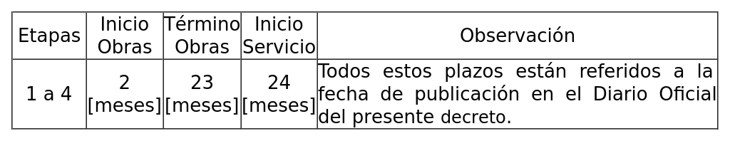 2. Los plazos, son los que se indican a continuación: