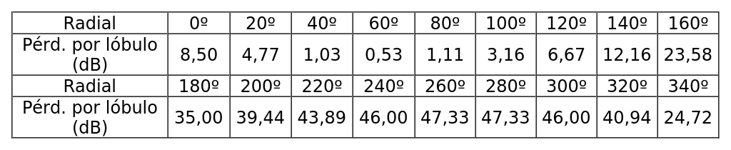- Diagrama de radiación horizontal de acuerdo a la siguiente tabla: