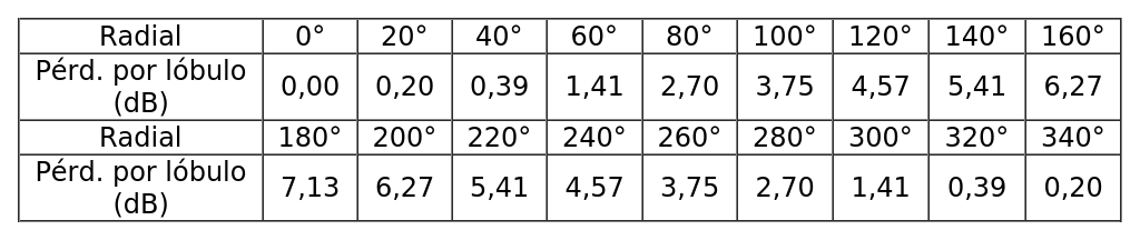 - Diagrama de radiación horizontal de acuerdo a la siguiente tabla: