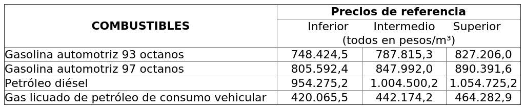 DETERMINA PRECIOS DE REFERENCIA PARA COMBUSTIBLES DERIVADOS DEL PETRÓLEO