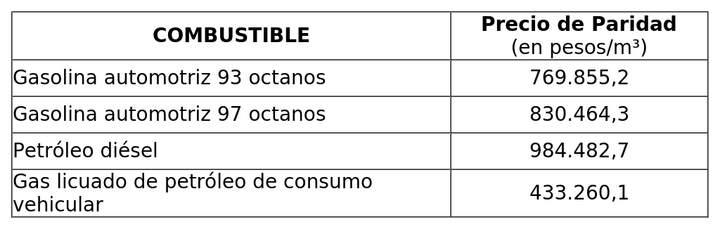 FIJA PRECIOS DE PARIDAD PARA COMBUSTIBLES DERIVADOS DEL PETRÓLEO