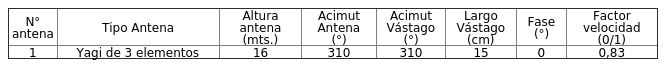 - Tipo de antena : Yagi de 3 elementos.