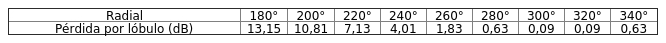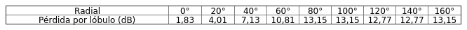 - Diagrama de radiación horizontal, de acuerdo a la siguiente tabla: