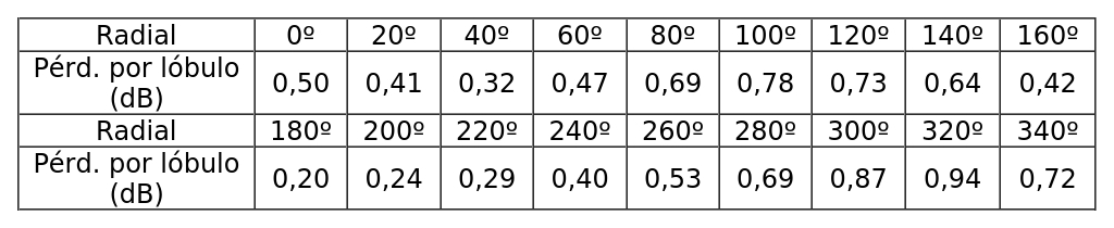 - Diagrama de radiación horizontal de acuerdo a la siguiente tabla: