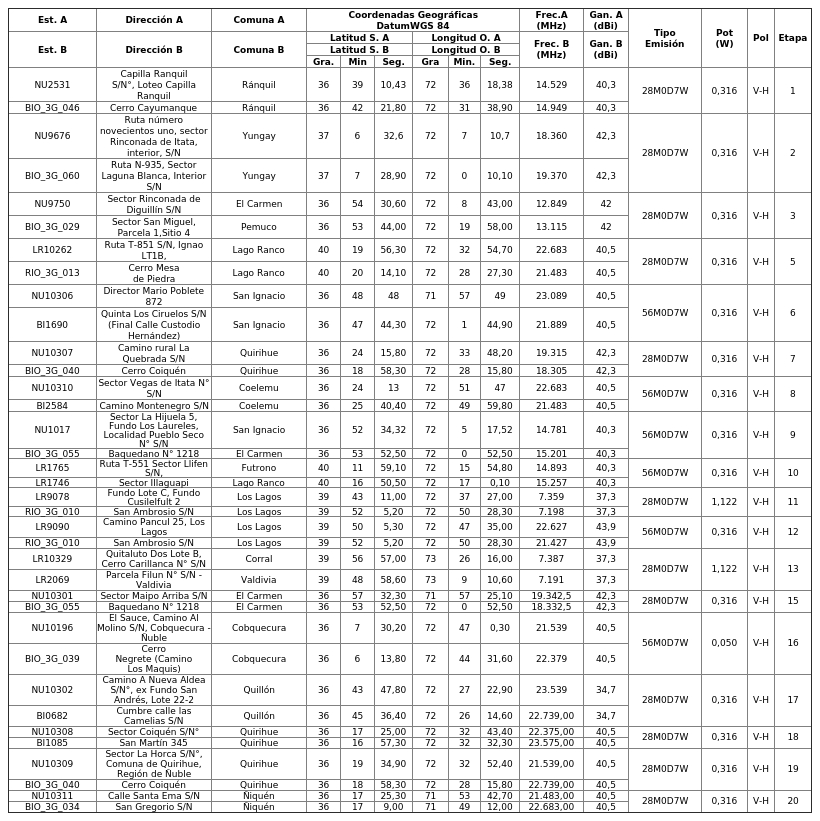1. Autorízase a la concesionaria para instalar, operar y explotar dieciocho (18) radioenlaces, según se indica a continuación: