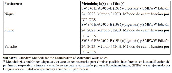 Artículo octavo. Metodologías de medición, muestreo y análisis. Para la ejecución de las actividades de medición, muestreo y análisis se deberá proceder según lo establecido en las metodologías de medición, muestreo y análisis, o sus versiones actualizadas, que se incluyen en el Anexo 2, o alguna otra contemplada en referencias técnicas de la materia que previamente haya sido validado su uso por algún organismo competente de manera explícita en los respectivos Reportes Técnicos. Lo anterior, sin perjuicio que, una vez dictado el Compendio de Métodos de Medición, Muestreo y Análisis por esta Superintendencia, se deberá proceder como allí se indique en cuanto a la materia.