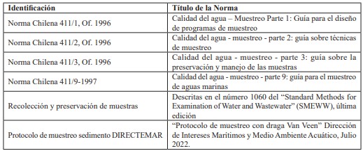 Se hace presente que, para la matriz de agua marina, la fracción de metales normados corresponde a la total, mientras que, para la matriz de sedimentos marinos, la fracción de los metales normados corresponde a la extraíble.