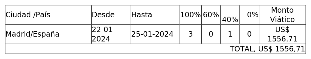 Que, no se le pagará viático por el día 26 de enero de 2024, por encontrarse en vuelo de regreso.