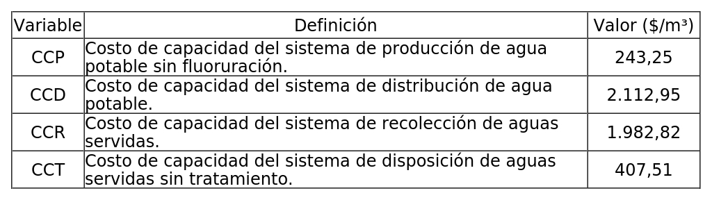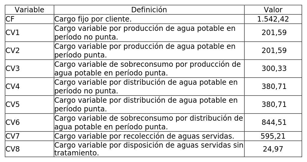 La definición de las variables incorporadas en las fórmulas tarifarias anteriores y sus respectivos valores, al 31 de diciembre de 2024, son los indicados a continuación: