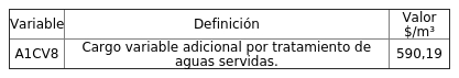 Si la disposición de aguas servidas se realiza con tratamiento, el cargo CV8 aumentará de acuerdo con la siguiente tabla: