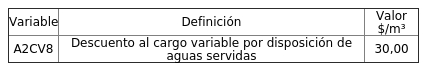 1.1.5. Cargo variable por servicio de alcantarillado de aguas servidas ($/m3): CVAL