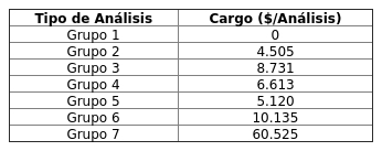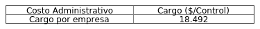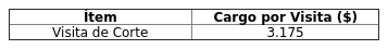 Los valores a cobrar serán: Cargo * IN12, de acuerdo a las siguientes tablas: