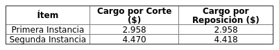 El prestador podrá cobrar por concepto de corte y reposición del suministro a usuarios morosos los siguientes cargos en las instancias que se indican: