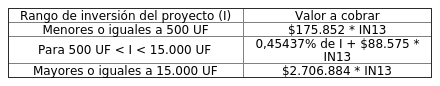 Donde I corresponde al monto total de la construcción del proyecto, en pesos.