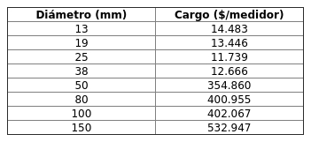 El prestador podrá cobrar por concepto de verificación de medidores el Cargo * IN14 de acuerdo a los siguientes valores: