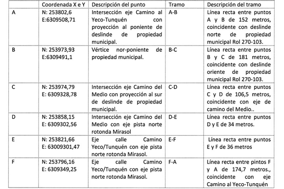 La descripción de los puntos y tramos de la poligonal descrita se indica en el Art. 6º de la presente ordenanza.