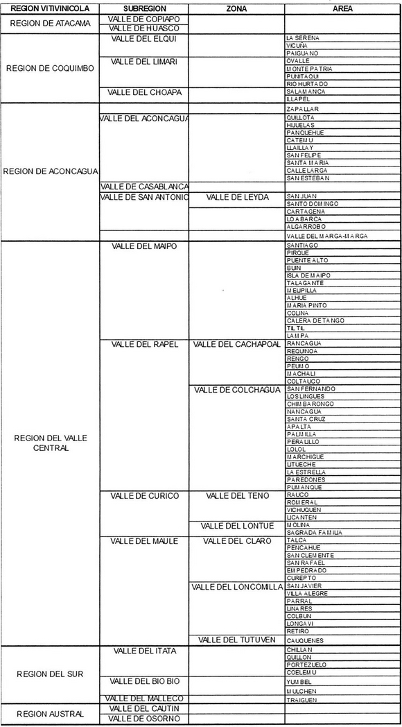 3.- REGIÓN VITÍCOLA DE ACONCAGUA: Comprende a la Decreto 56,