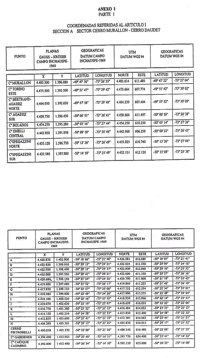 Las coordenadas señaladas precedentemente figuran en el Anexo I del presente Acuerdo en el sistema WGS 84.