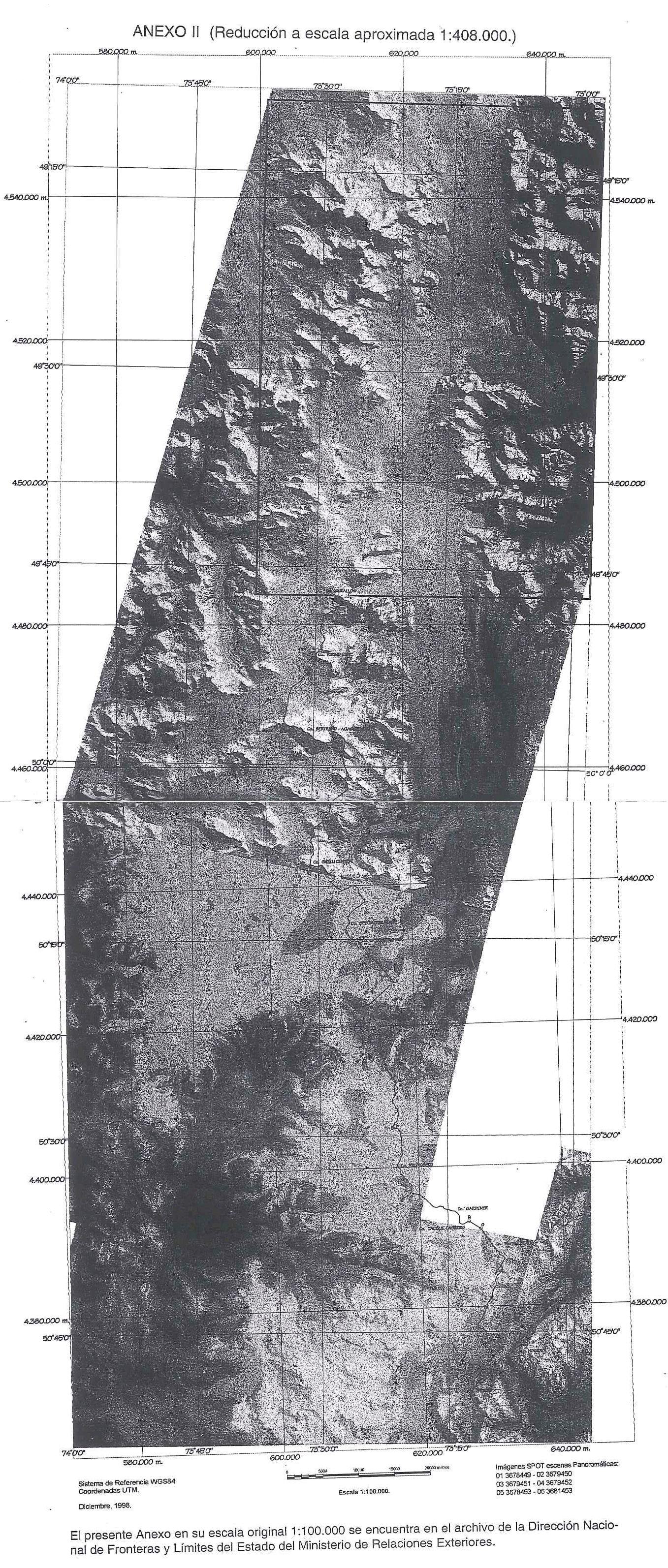 Las coordenadas de los puntos antes indicados figuran en el Anexo I del presente Acuerdo. La traza antes descripta, que ha sido representada en la imagen satelital Spot (escenas pancromáticas), escala 1:100.000, se incluye a modo ilustrativo y referencial en el Anexo II del presente Acuerdo.