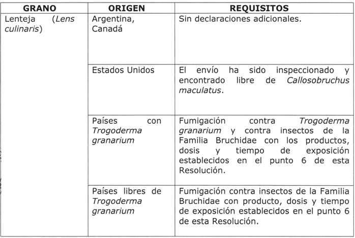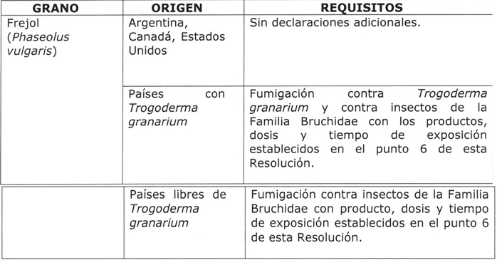 2. Para la importación de los granos y otros productos que se identifican en la presente resolución, se deberá dar cumplimiento a los siguientes requisitos generales: