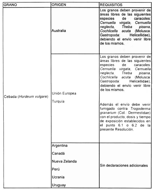 La RES 6073 Exenta, Agricultura, publicada el 21.12.2005, complementa la presente norma, en el sentido de incorporar para la especie Triticum aestivum y Triticum durum (trigo), el origen y requisito fitosanitario que se señala a continuación: Grano Origen Requisitos