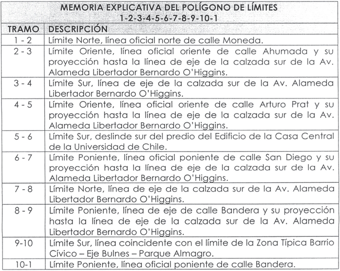 Artículo único: Declárase Zona Típica el sector de las calles Nueva York, La Bolsa y Club de La Unión, incluyendo la Casa Central de la Universidad de Chile, cuyos límites son:Decreto 137, EDUCACIÓN