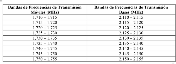 D.O. 24.02.20201.710-1.755 MHz y 2.110-2.155 MHz para el servicio público de telefonía móvil digital avanzado, en adelante el servicio.