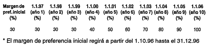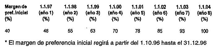 b. Los productos incluidos en el Anexo 1 gozarán de los márgenes de preferencia que en cada caso se indican, los que evolucionarán de acuerdo con el siguiente cronograma: