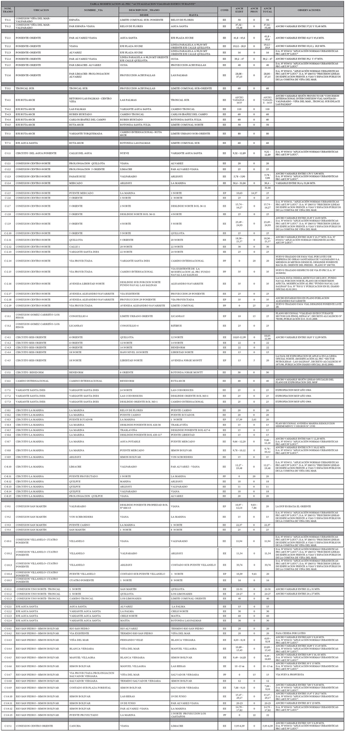 Los numerales 1 y 2 del Decreto 10046, Municipalidad de Viña del Mar, publicado el 16.09.2016, modifica la presente norma en el sentido de introducir cambios al plano regulador de la Comuna de Viña del Mar de la manera que la citada norma indica.