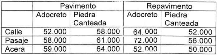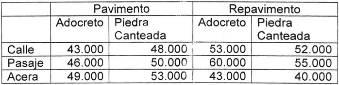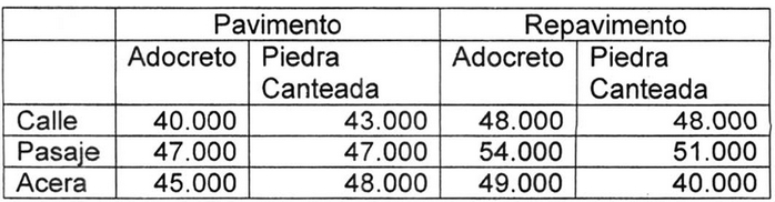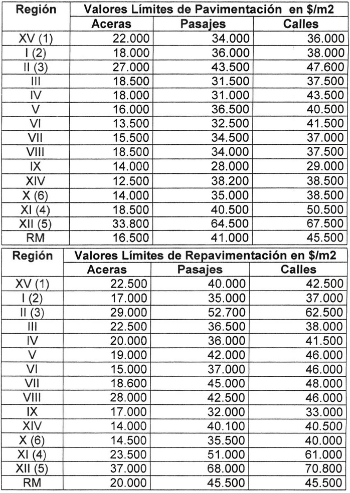 D.O. 21.09.2012consideren pavimentación o repavimentación de aceras exclusivamente, dichas aceras deberán pertenecer a calles que tengan sus calzadas pavimentadas. De acuerdo aResolución 8009 EXENTA,
