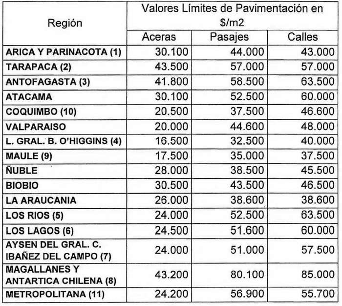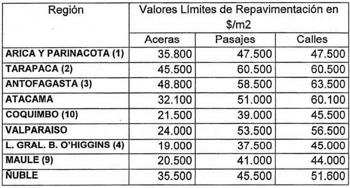 D.O. 21.09.2012consideren pavimentación o repavimentación de aceras exclusivamente, dichas aceras deberán pertenecer a calles que tengan sus calzadas pavimentadas. De acuerdo aResolución 8009 EXENTA,