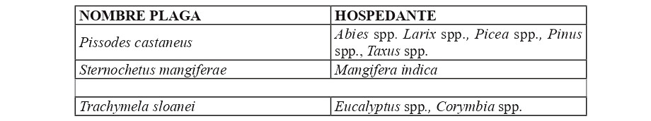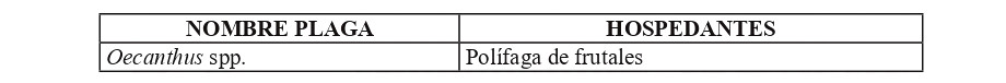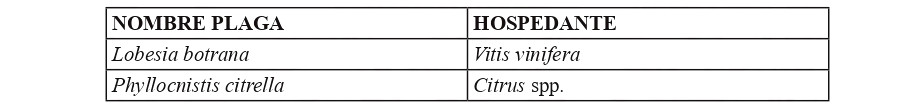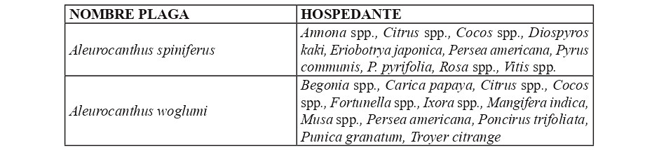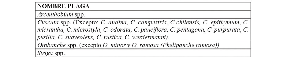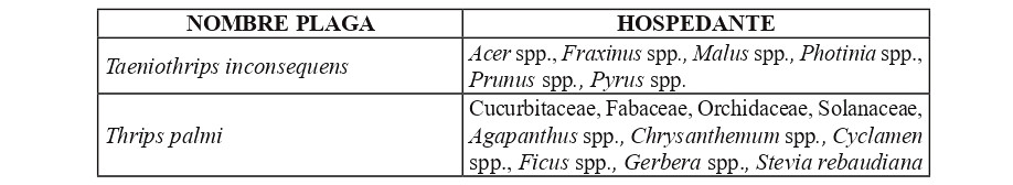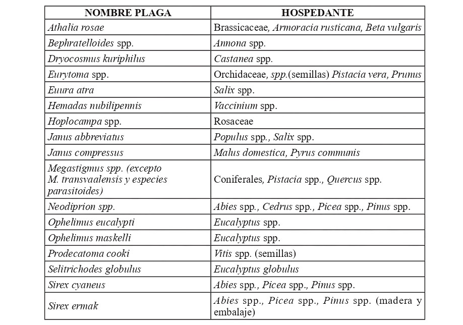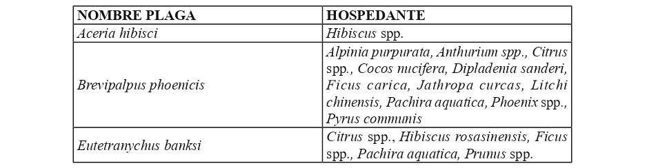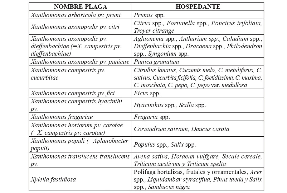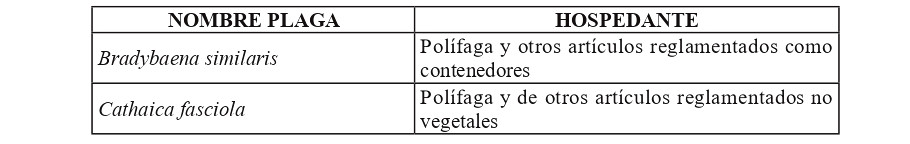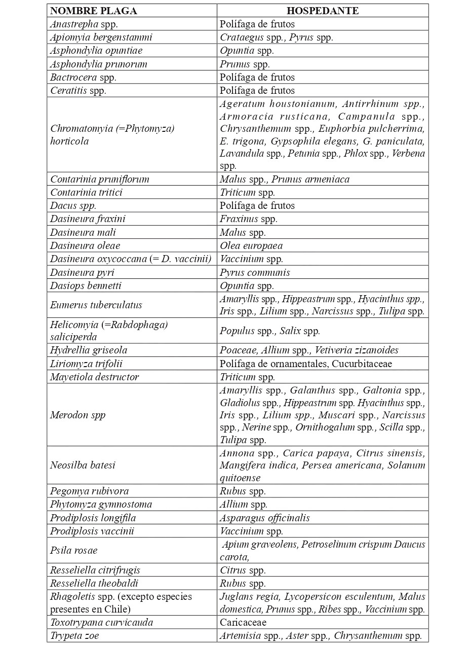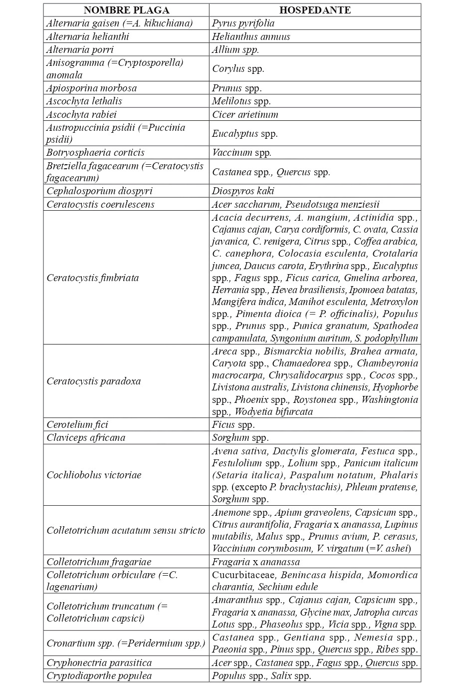 D.O. 14.10.2025 vigésimo: Las plagas señaladas a continuación se encuentran ausentes del territorio nacional, tanto insular como continental y se encuentran relacionadas a los hospedantes que indica:
