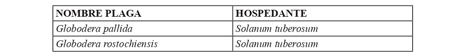 D.O. 07.03.2013 Artículo Sexto: El control oficial de contención de las plagas Thecaphora (Angiosorus) solani, Ralstonia solanacearum (raza 3, biovar 2), Globodera rostochiensis, Globodera pallida y Phoma exigua var. foveata genera un área libre de plagas, cuya distribución y reglamentación se Resolución 2396 EXENTA,