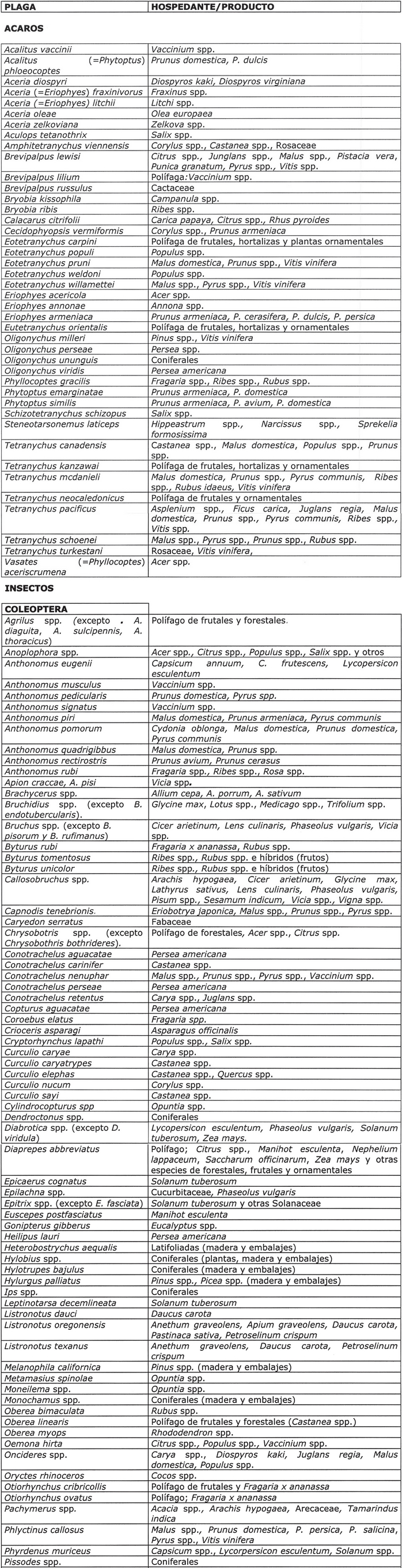 Artículo vigésimo: Las plagas señaladas a continuaciónResolución 194 EXENTA,