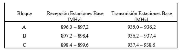 Fíjase la siguiente norma técnica para el servicio público de transmisión de datos móvil en las bandas de frecuencias 896 - 900 MHz y 935 - 939 MHz.