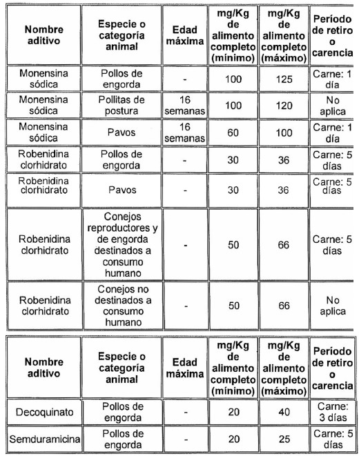 D.O. 09.05.2015zan los siguientes aditivos coccidiostatos para su utilización en productos destinados a la alimentación animal: