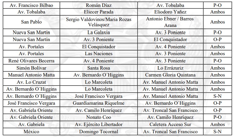 No obstante lo anterior, en el eje Gran Avenida José Miguel Carrera, entre calle Riquelme y Goycolea, se establecerá adicionalmenResolución 1610 EXENTA,