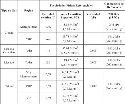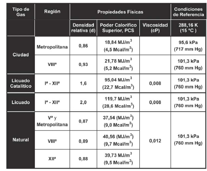 Los tipos de gas corresponden específicamente a los pertenecientes a la primera, segunda o tercera familia según se establece en los numerales 10.63.2 al 10.63.4 del presente reglamento.
